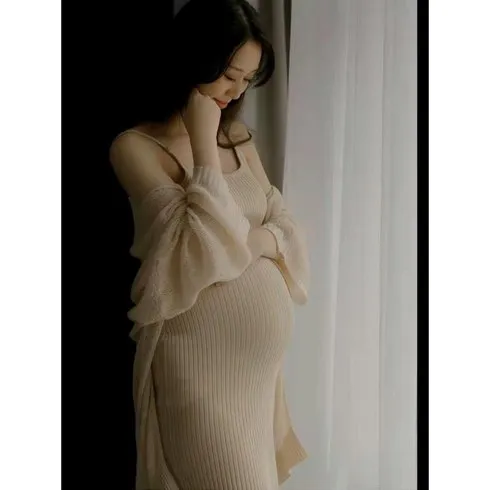 쌍떼 샤랄라 러블리 만삭촬영 D라인 임산부 원피스