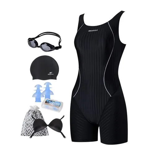 아쿠아티카 여성용 실내 반신 2부 수영복 AQA29360 + 일반용수경 6종세트