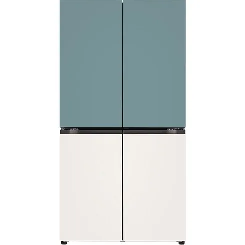 LG전자 디오스 오브제컬렉션 4도어 냉장고 T873MTE111 870L 방문설치, 클레이민트(상), 베이지(하)