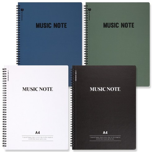 뭉구 A4 절취 음악 노트, 화이트, 블랙, 블루, 그린, 4개