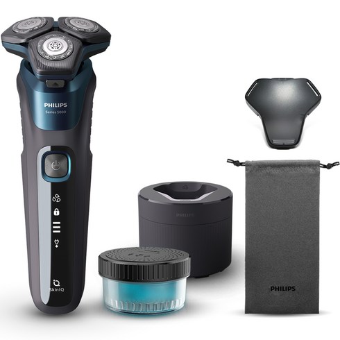 필립스 전기면도기 SkinIQ 5000 + 무선 클렌징팟 세트, S5579/60, 일렉트릭 블루