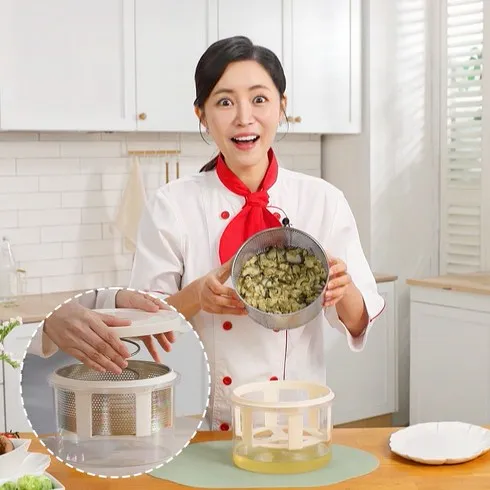 – 대용량 요술짤순이 킹스텐 스텐망 야채 탈수기로 쉽고 빠르게 오이지, 나물 물기를 제거하세요!