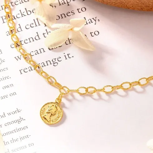 [골드팡] 24k 순금 라운드 엘리자베스코인 목걸이 여성데일리 기념일 특별 볼드오벌체인 주얼리선물추천
